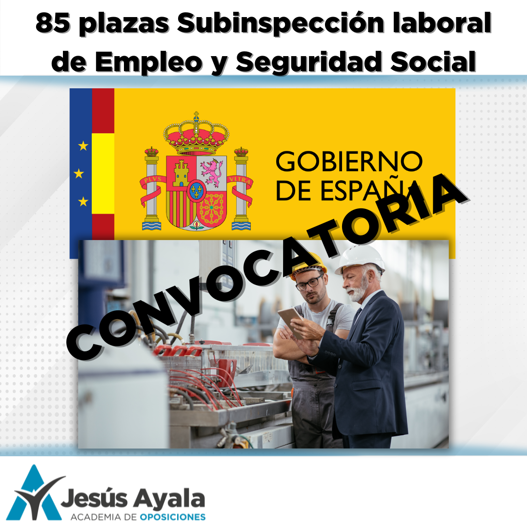 En el día de hoy se ha publicado la convocatoria de 85 plazas (76 turno general+9 turno discapacidad) para Subinspectores laborales de Empleo y Seguridad Social.