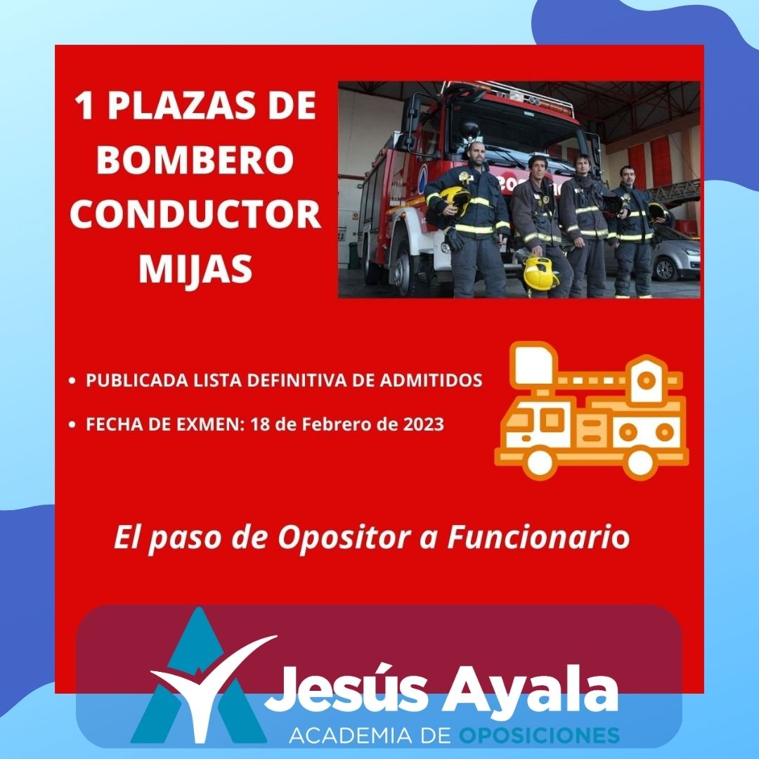 Publicada en el BOP de Málaga del martes 31 de Enero de 2023, de 1 PLAZA de BOMBERO-CONDUCTOR del Ayuntamiento de MIJAS (Málaga):