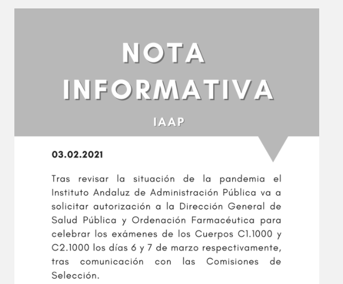 El Instituto Andaluz de Administraciones Públicas, IAAP, que es el encargado de gestionar los procesos selectivos de la Administración General de la Junta de Andalucía, ha emitido una nota informativa dando a conocer las fechas estimadas de los exámenes para Auxiliar Administrativo y para Administrativo.
