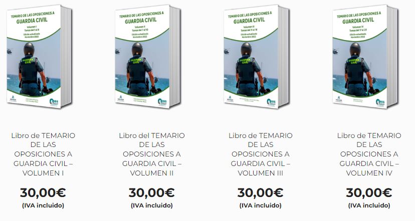 - Temario Jurídico: 4 volúmenes a 30€ cada volumen.