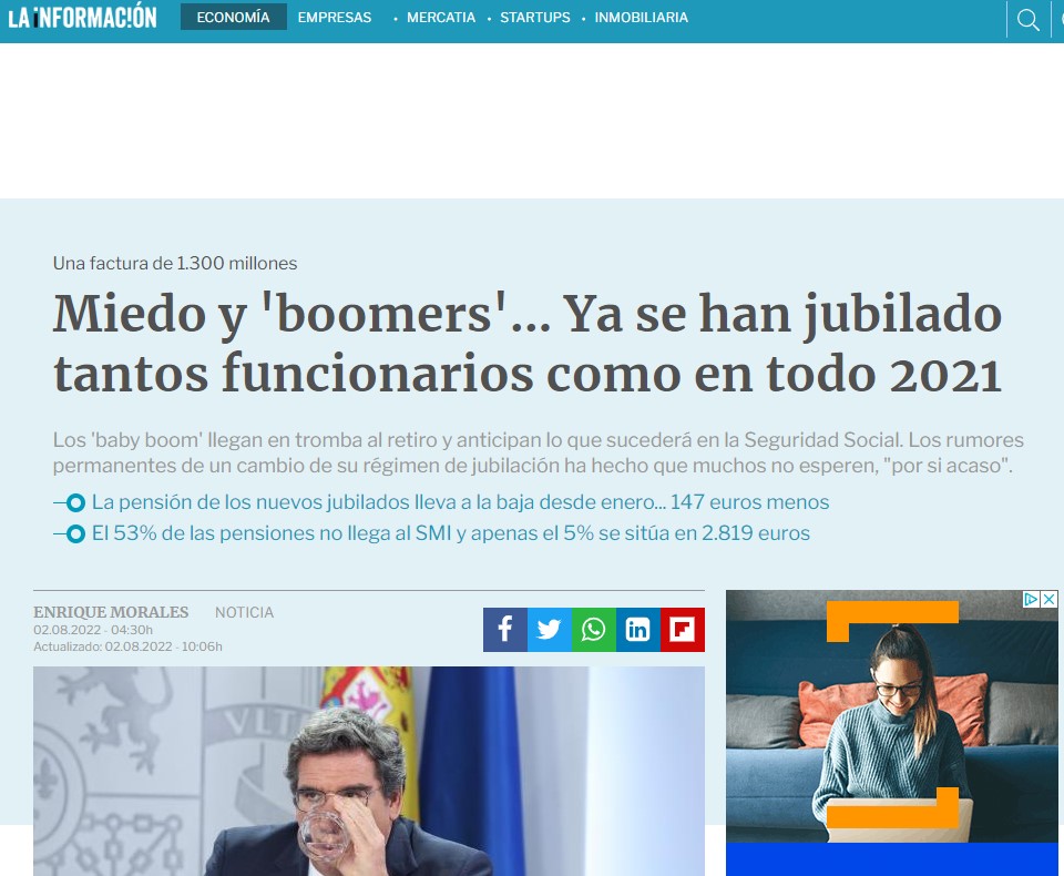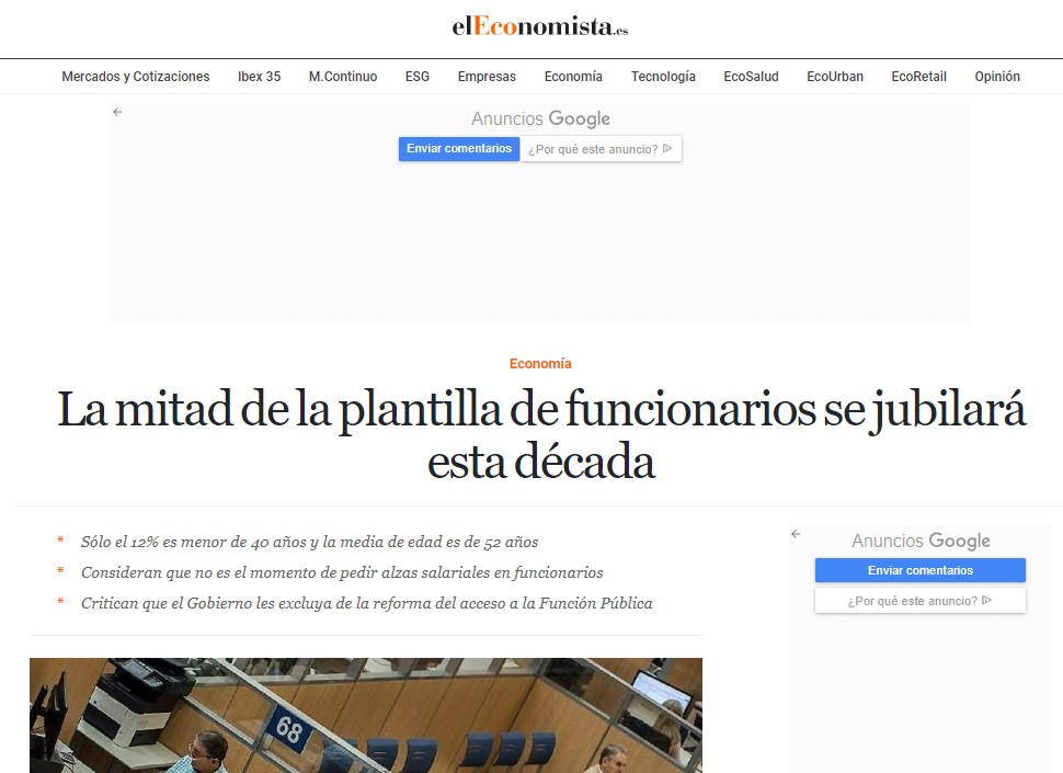 • En los próximos 15 años se van a jubilar funcionarios entre 1.000.000 y 1.500.000 empleados públicos (casi la mitad de empleados públicos de España).