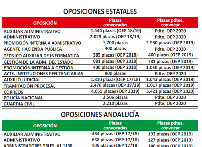 Sois muchos alumnos/as los que nos preguntáis por la situación actual de algunas especialidades y que plazas se esperan para este año 2020, por lo cual te mostramos una foto de la situación del empleo público ahora mismo.